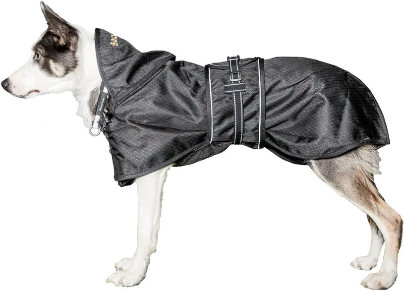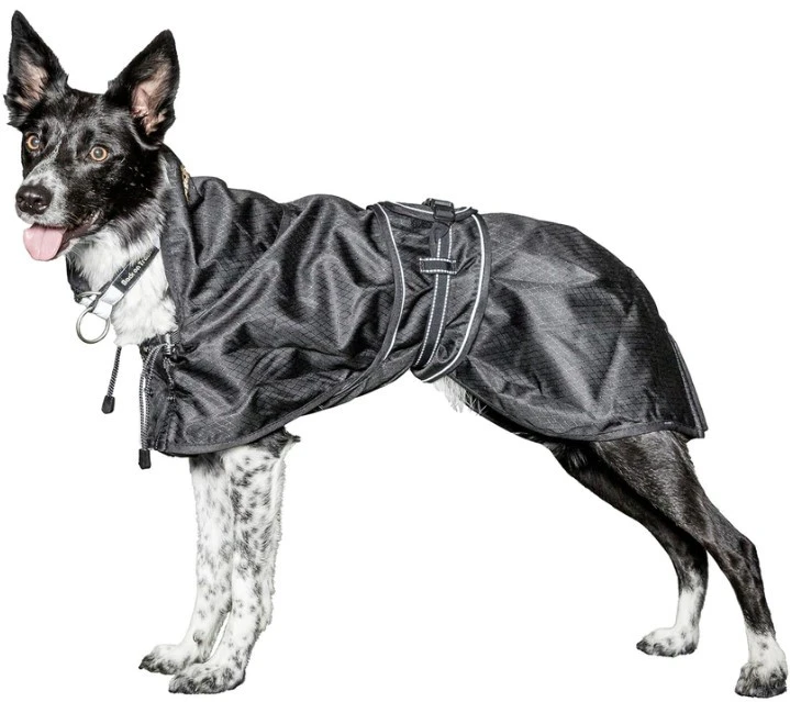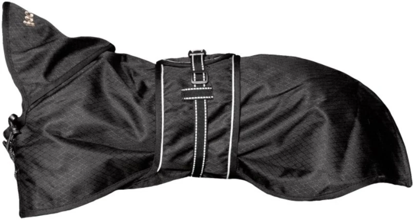 Back On Trackin ohut joka säähän sopiva koiran takki pitää koirasi kuivana säällä kuin säällä. Takin ainutlaatuinen muotoilu suojaa koiran tärkeimpiä lihasryhmiä sekä herkkää vatsan aluetta. Lämmin, heijastava Welltex®-sisävuori voi parantaa koiran verenkiertoa, mikä puolestaan pitää koiran lihakset pehmeinä ja joustavina. Mahavyössä oleva kaksoiskiinnitys estää sadevettä pääsemästä mahavyön alle. Kaulassa oleva kiristyssäätö parantaa istuvuutta, ja takana on säädettävät jalkalenkit. Kaulaosassa on aukko taluttimelle, ja etuosassa on kiristysmahdollisuus. Molemmissa kyljissä on heijastimet, jotka parantavan näkyvyyttä pimeällä.
