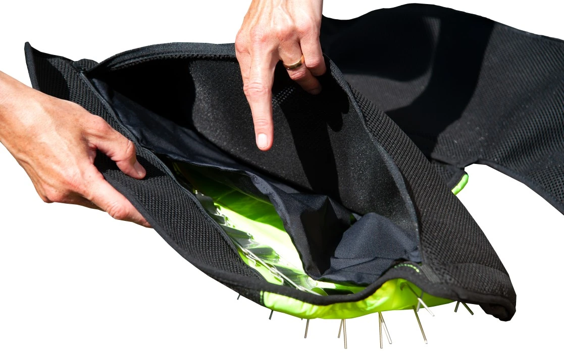 DogTech ONE Villisikasuoja suojaa koiraasi villisian hyökkäykseltä ja on yhteensopiva suojaliivin DogTech ONE Modular Vest kanssa. Suoja sijoitetaan suojaliivin sisään, kuvan osoittamalla tavalla. Huomaa, että liivi myydään erikseen.