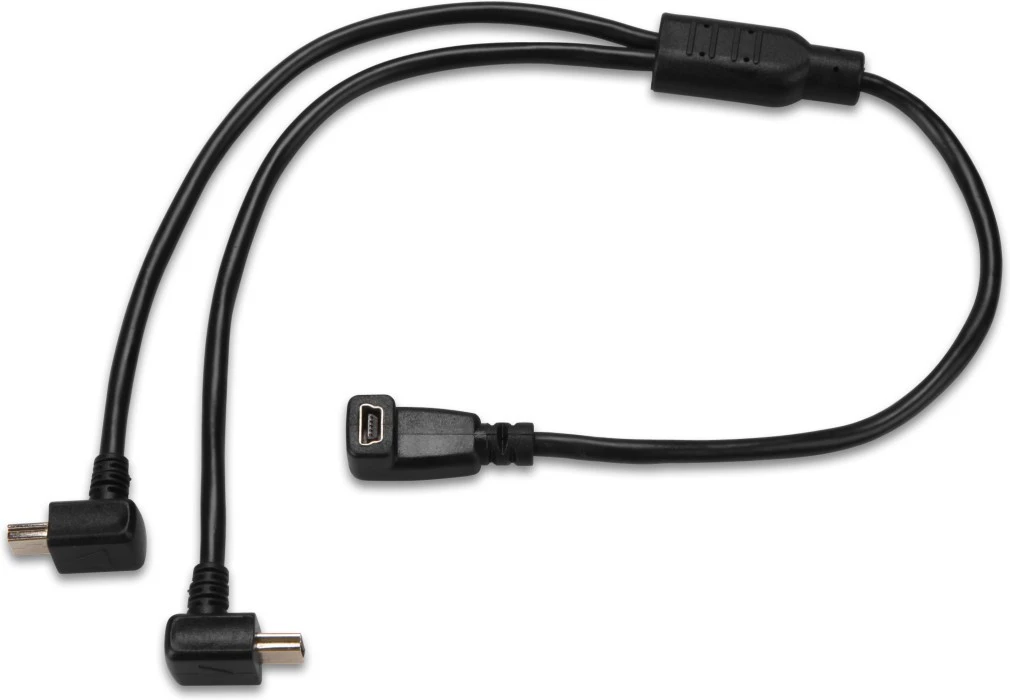 Haarautuvan latauskaapelin avulla voit ladata kahta Garmin-laitettasi yhtä aikaa olit sitten kotona tai autossa. Latauskaapeli sopii Alpha 50, 100 ja T5- sekä T5 Mini -laitteisiin.