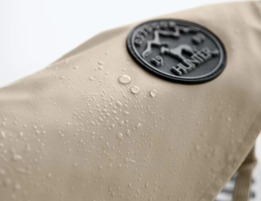 HUNTERin Milford on koirien sadetakki, jossa on kuminauhat takajaloille, jotka pitävät takin paikoillaan myös voimakkaissa tuulenpuuskissa.