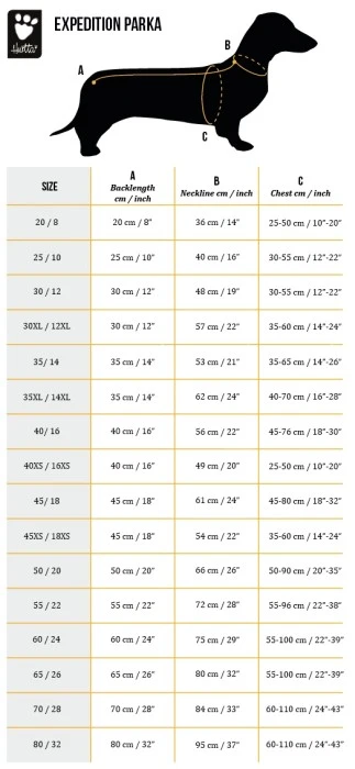 Helppokäyttöisen parkan tekniset materiaalit kestävät myös riehakkaimmissa leikeissä. Expedition Parkan suojaava malli on suunniteltu tarjoamaan erinomaisen liikkumisvapauden koiran juostessa tai leikkiessä. Etuosan veden- ja tuulenpitävät, pehmeät ja elastiset alueet joustavat koiran liikkuessa. Säädettävä nyörikiristys pääntiellä sekä kauluksessa, selkäosan säätö on sijoitettu takin sisäpuolelle.