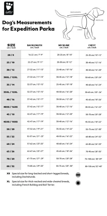 Vedenpitävä Expedition-parka on hyvä, lämmittävä valinta ohutturkkisille koirille aina kun on viileää ja kaikille roduille kylmiin olosuhteisiin. Mantteli sopii lisälämmöksi urheileville koirille treenien jälkeen ja koirille, jotka tarvitsevat lisälämpöä esim. ikänsä vuoksi.