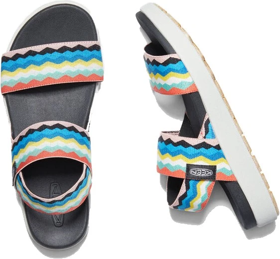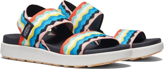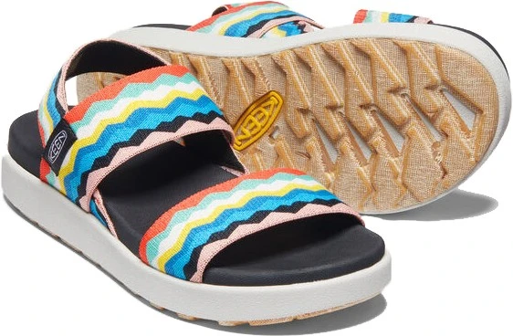 Keenin Ellet ovat kevyet sandaalit, jotka joustavat mukavasti ja tukevat hyvin jalkaa. Kannassa on tuki, ja karkeasti kuvioitu pohja tarjoaa hyvän pidon, jolloin käveleminen on mukavampaa. Muotoiltu EVA-väli- ja sisäpohja antaa jalalle tukea ja vaimentaa iskuja, ja sisäpuoli on käsitelty ekologisesti niin, että se torjuu epämiellyttävien hajujen muodostumista.