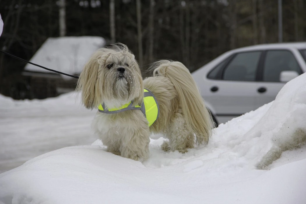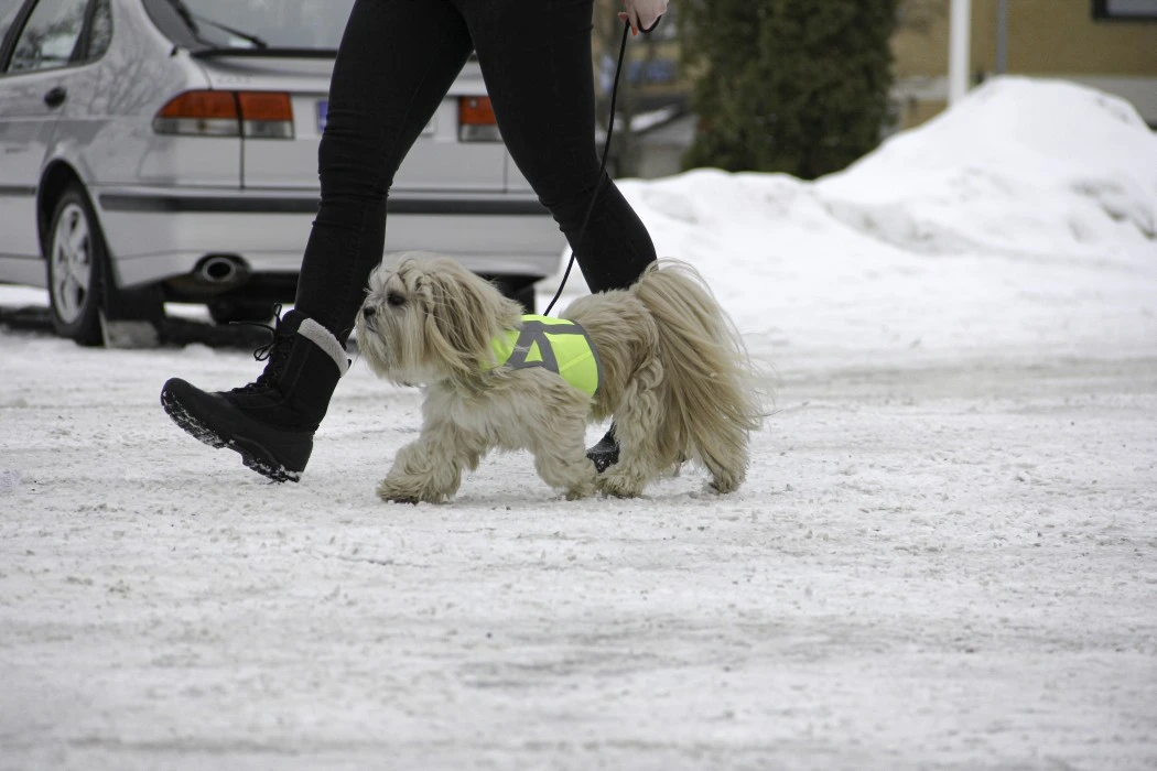 Kaamos on käytännöllinen heijastinliivi koirille. Liivi laitetaan nopeasti ja helposti koiran pään yli ja kiinnitetään rintakehän ympärille tarranauhalla. Valmistettu kestävästä kevyestä materiaalista, jossa on hyvä istuvuus ja täydellinen liikkumisvapaus. Sopii kaikenlaiseen ulkoiluun pimeänä vuodenaikana. Runsaasti heijastinnauhaa reunoilla ja sivuilla takaa parhaan näkyvyyden kaikkiin suuntiin.