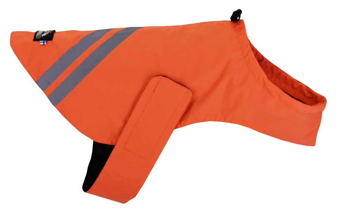 Kajo on erinomainen huomioliivi metsästykseen, harrastamiseen ja ulkoiluun. Liivi on valmistettu kestävästä ja joustavasta materiaalista. Kirkkaat värit auttavat erottamaan koiran maastossa, vasemmalla puolella oleva keltainen merkintä osoittaa, mihin suuntaan koirasi liikkuu ja sivuilla sekä päällä olevat heijastimet parantavat näkyvyyttä pimeässä. Kajo-merkkiliivi puetaan nopeasti ja helposti koiran pään yli, kiinnitetään leveällä tarranauhalla rinnan ympärille ja säädellään kuminauhalla pääntiessä täydellisen istuvuuden takaamiseksi, joka ei rajoita koirasi liikkumisvapautta.