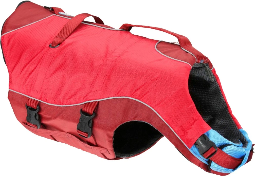 Surf n ‘Turf Life Vest -pelastusliivi koirille tekee vesileikkimisestä sekä turvallisempaa että helpompaa. Pelastusliivissä on kaksi D-rengasta, joihin voit kiinnittää talutushihnan ja kaksi kahvaa, joihin voit tarttua, jos koira tarvitsee apua. Pelastusliivissä on kolme säätöpistettä Nifco-pikalukitussoljilla, joten pelastusliivin yksilöllistä istuvuutta on helppo säätää. Liivissä on korkea kontrastiväri ja heijastavat yksityiskohdat, joten koirasi näkyy selvästi vedessä. Lisäksi pelastusliivissä on sporttinen leikkaus maksimaalista liikkumisvapautta varten.