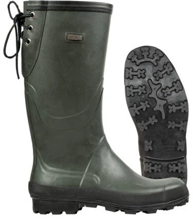 Finnjagd-kumisaappaassa on matala pohja hyvällä pidolla ja pohkeen kohdalla nauhat, joilla voi säätää istuvuutta sopivaksi. Ympärivuotista käyttöä ajatellen saappaassa on myös kiinnityskohdat nastoille ja irroitettavat huopapohjalliset.