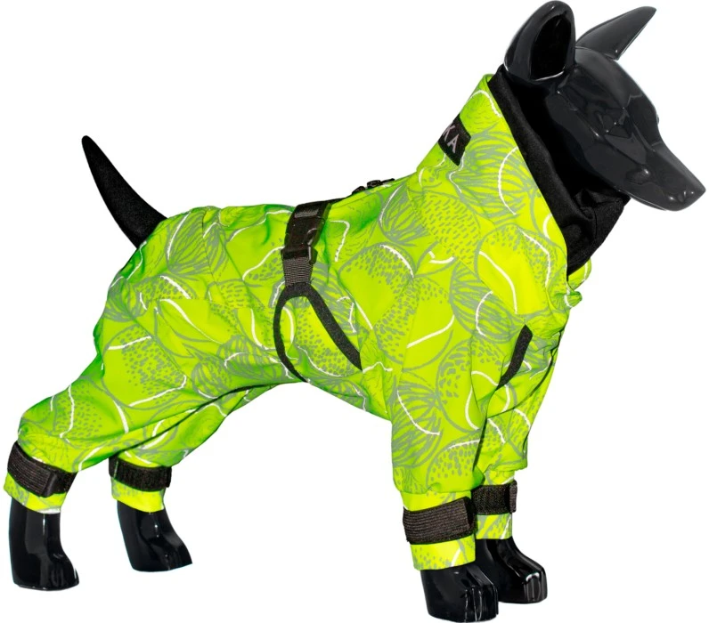 Haalari heijastava pinta tekee koirasta näkyvän pimeässä. Sen kirkkaan neonkeltainen väri lisää myös näkyvyyttä. Teflon-materiaali suojaa haalaria tahroilta, joten sitä ei tarvitse pestä niin usein.