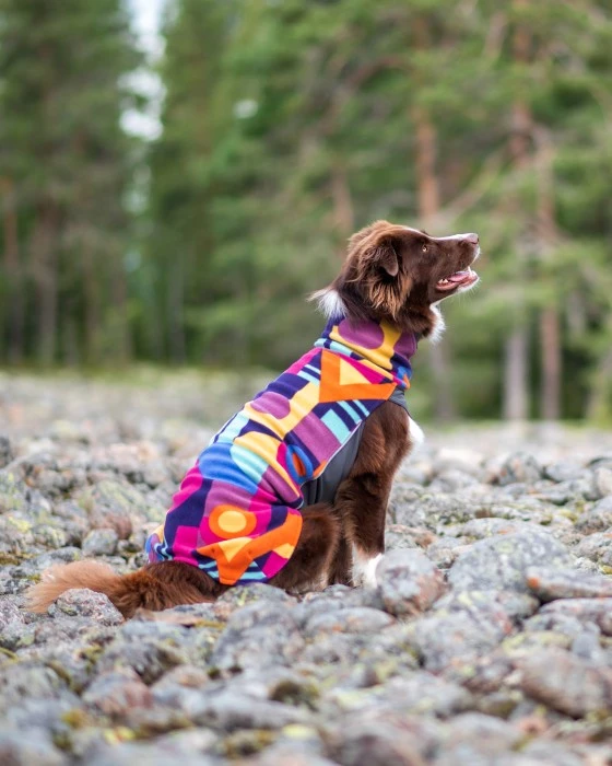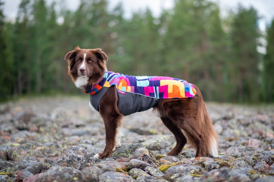 JumppaPomppa on erittäin joustava ja monikäyttöinen koiran lämpöpaita. Pehmeän fleecen ja vettä hylkivän lämpötrikoon yhdistelmä sopii ympärivuotiseen käyttöön. Yläosa on valmistettu antistaattisesta ja erittäin joustavasta fleecestä, jonka ansiosta paita on helppo pukea ja riisua. Alapuoli on valmistettu vettä hylkivästä lämpötrikoosta, joka suojaa koiran vatsaa ja rintaa.