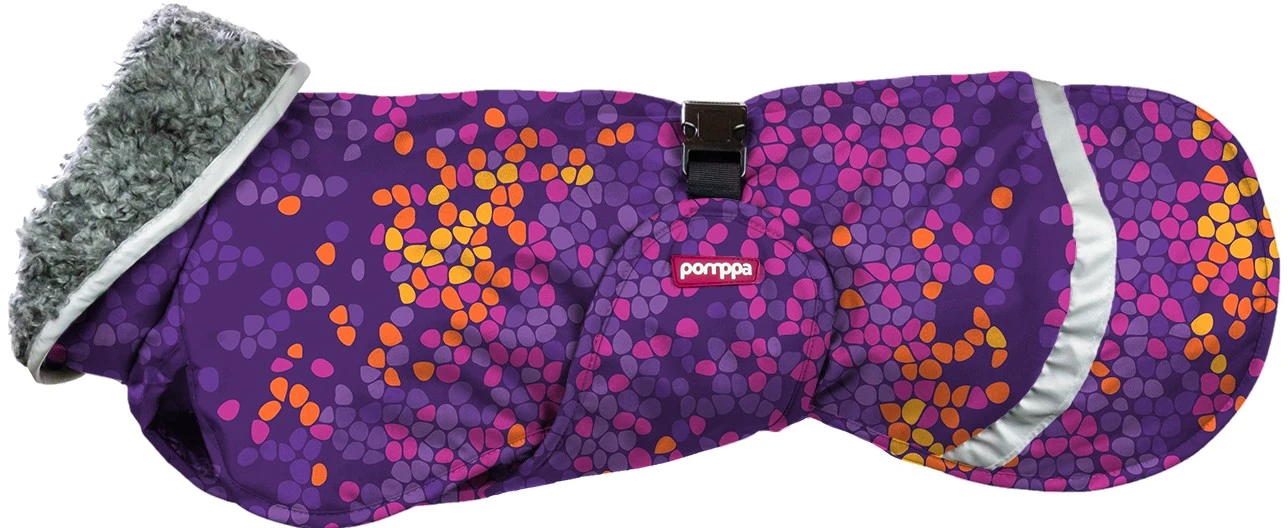 PerusPomppa on lämmin ja monipuolinen talvitakki, joka sopii kaikenlaisille koirille. Vedenpitävä ja kestävä päällyskangas suojaa koiraa sekä sateiselta että lumiselta säältä. Paksu teddyvuori pitää koiran lämpimänä pakkasella sekä voimakkaassa tuulessa.