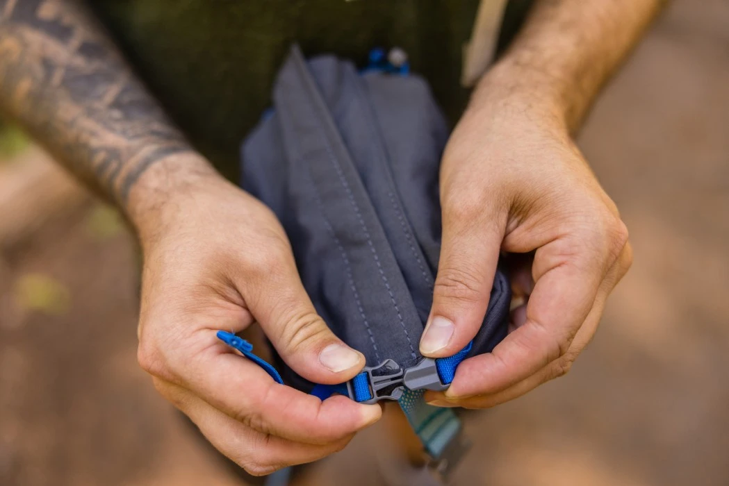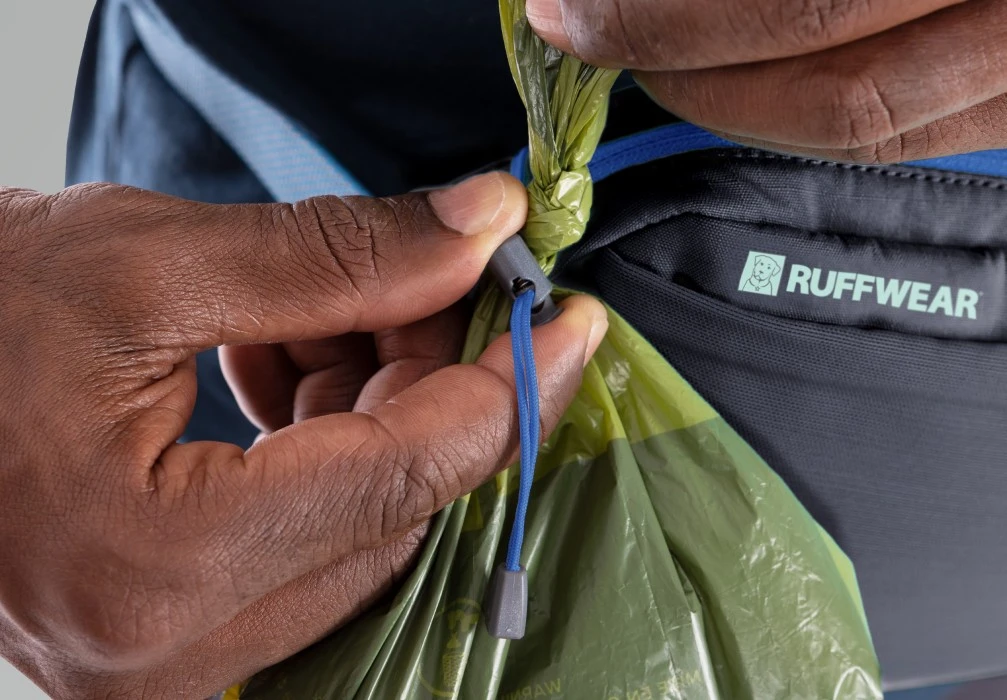 Pienet yksityiskohdat tekevät arkisista lenkeistä sujuvampia. Sivussa olevan osion avulla aukaiset kakkapussin valmiiksi ennen käyttöä ja silmukkaan kiinnität kakkapussin seuraavaan roskikseen saakka.