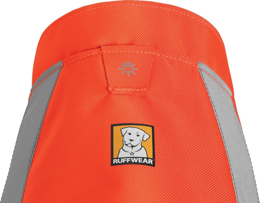 RuffWear Track Jacketin heijastava Blaze Orange takki takaa koirallesi hyvän näkyvyyden.
