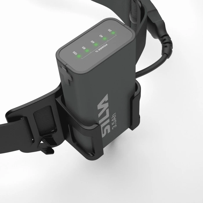 Exceed 4R:ssä on 3,5 Ah ladattava tehokas akku. Akun ansiosta voit olla ulkona pitkissä harjoituksissa pimeällä. Aseta akku päänauhassa olevaan akkupidikkeeseen tai käytä jatkojohtoa ja kanna akkua taskussa tai repussa. Ilmaisimen avulla voit seurata akun varaustasi ennen ja jälkeen harjoituksen. Siinä on myös ilmaisin, joka varoittaa alhaisesta akun varaustasosta, ja säästötila, joka säätää valon automaattisesti ja takaa 30 minuuttia valoa, jotta sinulla on aikaa palata kotiin.