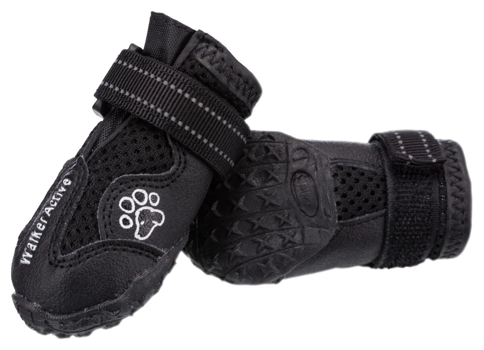 Erittäin kestävät, luistamattomat koirantossut. Tossut ovat hengittävät ja erittäin mukavat tassuissa. Tossuja käyttämällä voidaan ehkäistä vammoja tai edistää jo ilmaantuneiden vaurioiden paranemista. Tossut soveltuvat erityisen hyvin kiviseen maastoon, asfaltille tai kuumalle hiekalle. Niitä voi käyttää myös sisällä antamaan pitoa liukkailla lattioilla. Lisäksi tossut suojaavat tassuja talvisin suolalta ja soralta. Helppo ja pitävä kiinnitys. Heijastavat yksityiskohdat lisäävät turvallisuutta pimeällä. Pakkauksessa on kaksi tossua.