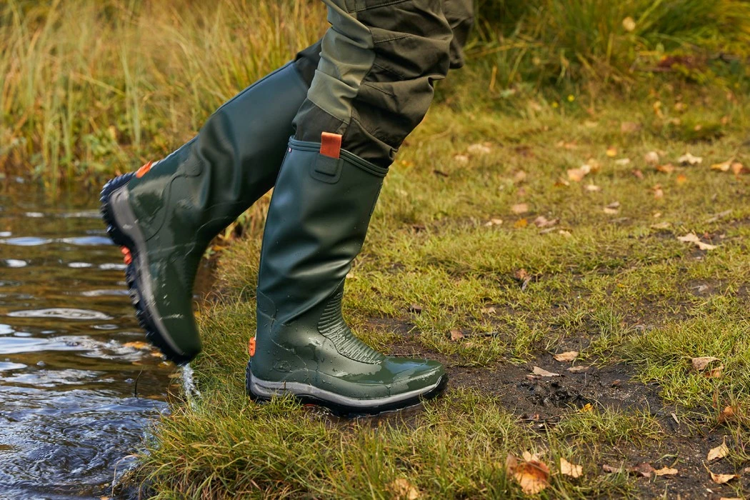 Kevyet ja joustavat Elk Hunter Light -kumisaappaat sopivat erinomaisesti niin metsässä kuin muunlaisessakin maastossa liikkumiseen. Tämä malli on huomattavasti kevyempi kuin klassikoksi muodostunut Viking Trophy. Elk Hunter Light -saappaiden varsi on pehmeää kumia, jonka voi tarvittaessa taittaa, jos saappaat haluaa pakata esimerkiksi reppuun. Saappaissa on Vikingin kestävä UGC®-pohja, joka antaa täydellisen pidon myös epätasaisissa, märissä ja liukkaissa maastoissa. Pehmustettu EVA-välipohja tarjoaa mukavuutta koko päiväksi, ja sisävuori on nopeasti kuivuvaa polyesteria. Saappaan varressa oleva lenkki helpottaa sen vetämistä jalkaan. Kaikki Viking-kumisaappaat on valmistettu käsin luonnonkumista.