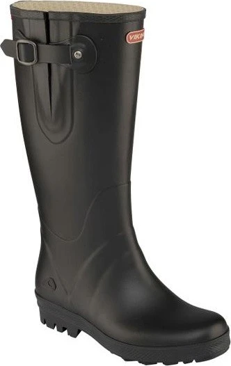 Viking Foxy naisten saappaat hyvällä istuvuudella. Saappaat ovat napakat kantapään kohdalta, jotta ne pysyvät paikallaan kävellessä. Varressa on solki säätämistä varten. Pieni korko antaa naisellisen ulkonäön saappaalle. Saappaissa on kuvioitu pohja liukastumisen estämiseksi. Foxy saappaat ovat 100 % luonnonkumia. Saappaissa on irrotettava pohjallinen sekä nopeasti kuivuva vuori varressa.